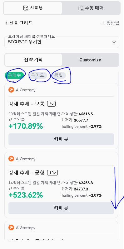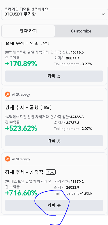 공매수 봇은 상승장이거나 차트 오름세가 보이실때 카피봇을 해주시는걸 추천드립니다.