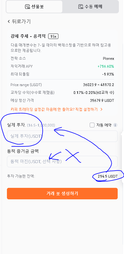 파이넥스 자동매매 그리드봇 사용방법 현물 선물 ep.2